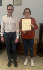 Die silberne Ehrennadel des Verbandes Bayerischer Rassegeflügelzüchter erhielt er 1992, die in Gold 2000. Die silberne Ehrennadel des Bundes Deutscher Rassegeflügelzüchter erhielt er 2003. Heinrich Breitinger ist seit 1977 Revisor im RGZV Schopfloch und damit mit 45 Dienstjahren das dienstältestes Mitglied in der erweiterten Vorstandschaft. Heinrich Breitinger züchtete in all den Jahren in denen er Mitglied im RGZV Schopfloch ist viele Rassen. So z.B. Stasser, Barnevelder, Zwerg-Barnevelder, Kölner Tümmler und bis heute Antwerpener Bartzwerge in wachtelfarbig und Zwerg-Welsumer in rostrebhuhnfarbig mit großem Erfolg und präsentierte diese auch auf vielen Ausstellungen. Lange bevor an den Bau der Wörnitzgrundhalle gedacht wurde, war er vor allem beim Käfigtransport mit seinem Lkw immer zur Stelle, wenn er gebraucht wurde. Beim Bau der Wörnitzgrundhalle war er ein aktiver Arbeiter, der Maschinen und anderes Gerät besorgen konnte, wodurch er dem Verein einiges an Kosten sparte. Bis heute ist Heiner ein verlässlicher Helfer bei allen Ausstellungen und Veranstaltungen die der RGZV Schopfloch ausrichtet Aufgrund seiner Verdienste um den Rassegeflügelzuchtverein Schopfloch wurde Heinrich Breitinger am 4 März 2022 zum Ehrenmitglied des Rassegeflügelzuchtverein Schopfloch seit 1900 e.V. ernannt. 05.03.2022 |