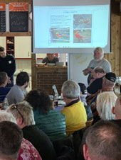 Da die letzten zwei Veranstaltungen ausfallen mussten, gab es diesmal kein spezielles Thema. Quer durch alle Sparten referierte Gerhard, so das für jeden Züchter etwas dabei war. Den Start machten die Wildtauben. Von der Krontaube über die Kleintäubchen bis zu einigen Fruchttauben wurden viele Arten besprochen. So auch bei den Fasanen, die auf die Wildtauben folgten. Von den Edel-, Langschwanz-, Pfau-, bis zu den Feuerrückenfasanen war alles vertreten. Danach folgte eine kurze Pause in der viele Züchter über die mitgebrachten Tiere diskutierten. Den Schluss bildete das Wasserziergeflügel. Von den Gänsen über die Säger und Enten, bis zu den Meeresenten wurde alles besprochen und teilweise auch kontrovers diskutiert. Leider konnten nicht alle Züchterfreunde einen Platz im Aufenthaltsraum der Wörnitzgrundhalle finden, aber auch wir vom RGZV Schopfloch wurden von den vielen Besuchern die der Veranstaltung beiwohnen wollten überrascht. Deshalb werden wir versuchen, die Veranstaltung künftig in der Halle zu machen, damit jeder interessierte Züchter auch einen Sitzplatz findet. |