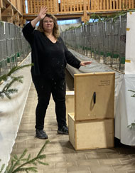 gestalteten Volieren präsentiert wird. Rebecca