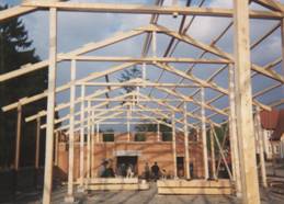 das gesamte Tragwerk der Halle aus Holz zu erstellen. Auch musste man in den